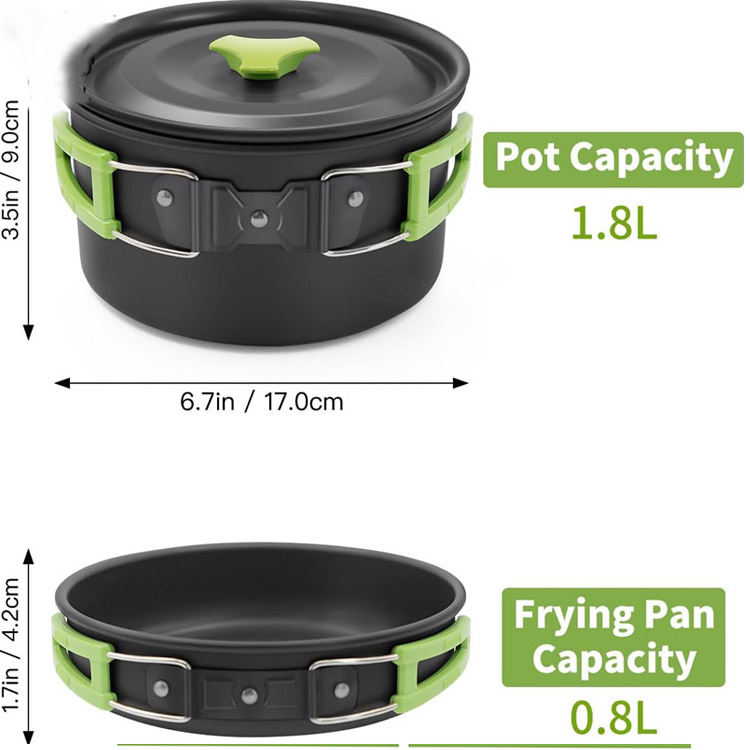 Adequado para várias fontes de calor, incluindo fogões de acampamento, lareiras e churrasqueiras portáteis. As panelas e frigideiras lidam com tudo, desde ferver água até fritar refeições com facilidade.