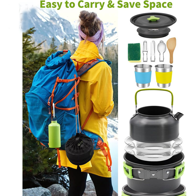 16pcs panelas de acampamento, conjunto de cozinha de acampamento panela de acampamento
