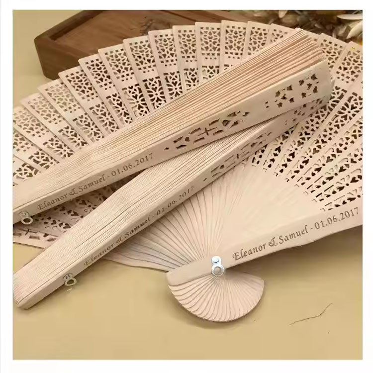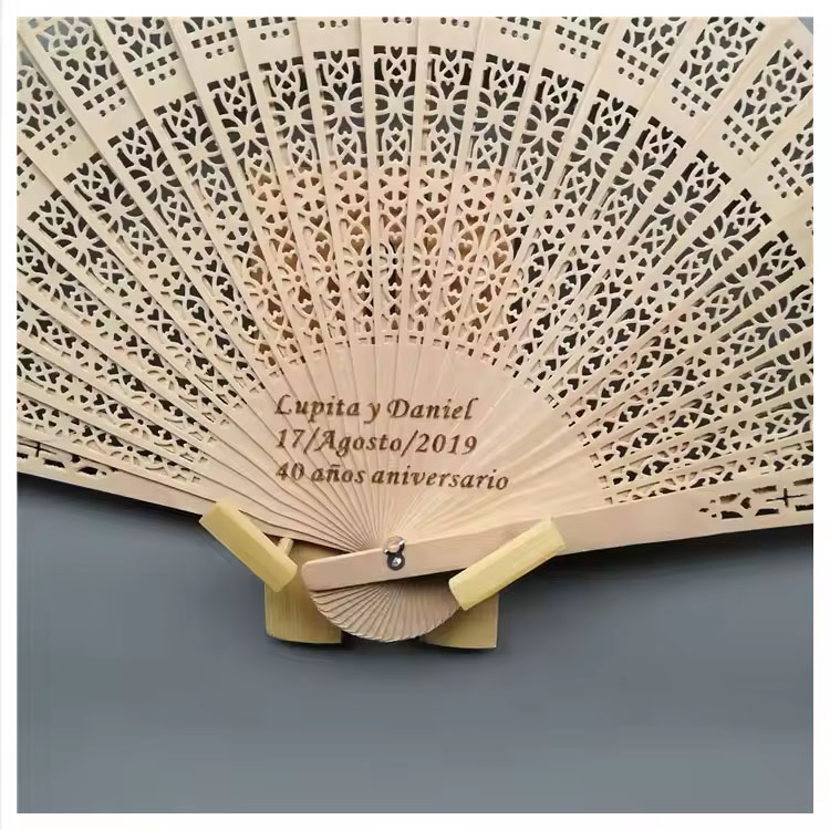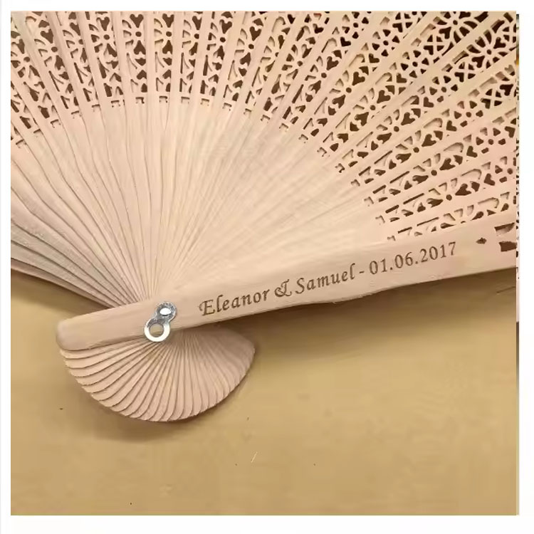 Personalize o leque com seus nomes, data do evento, logotipo ou mensagem significativa por meio de impressão de alta qualidade ou gravação a laser. Uma lembrança atenciosa e duradoura para convidados ou clientes, projetada para combinar com o tema ou identidade da marca do seu evento.
