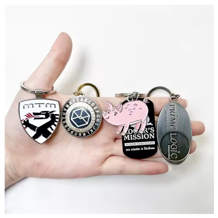 Chaves de logotipo personalizado Presentes de lembranças de lembranças personalizadas. Chapirantes de metal acessíveis e duráveis, com cores vivas, detalhes em relevo e formas versáteis. Perfeito para branding, campanhas de conscientização ou vendas de varejo.