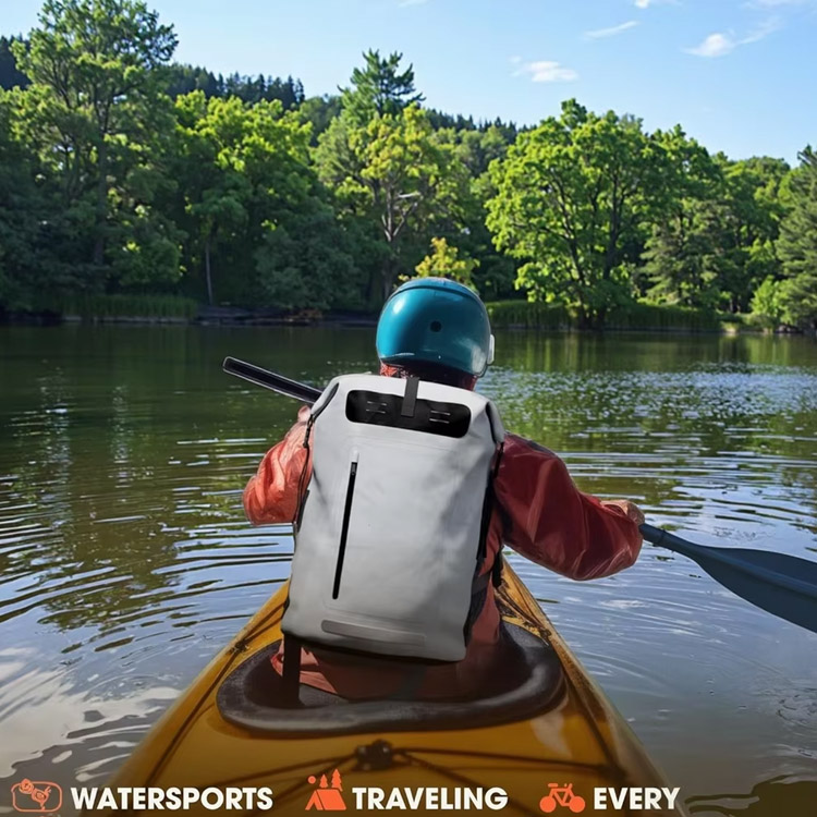 Perfeito para caminhadas, caiaque, passeios na praia, viagens de monções e esportes aquáticos. A construção 100% à prova d'água e as costuras soldadas duráveis suportam manuseio brusco em ambientes exigentes.