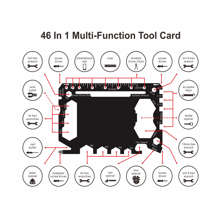 As the professional manufacturing vendor, we ‘d like to supply you BEST-HOME.Customized LOGO Stainless Steel Multi Function Card Tool.The product’s been exported to Europe, North America and Mid-East areas for a long time. As a factory, we can ensure accurate delivery time and best after-sale service, and our product quality is recognized by customers worldwide.