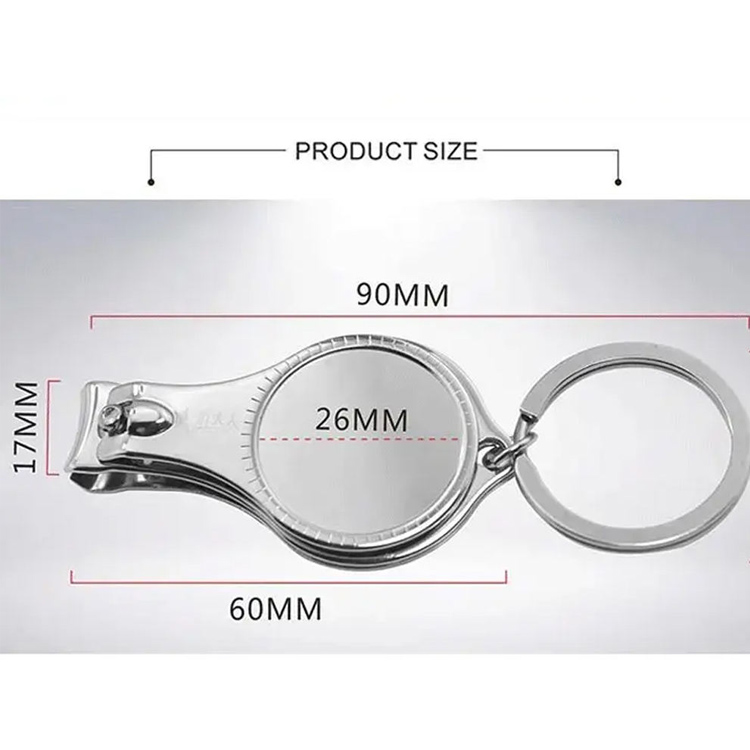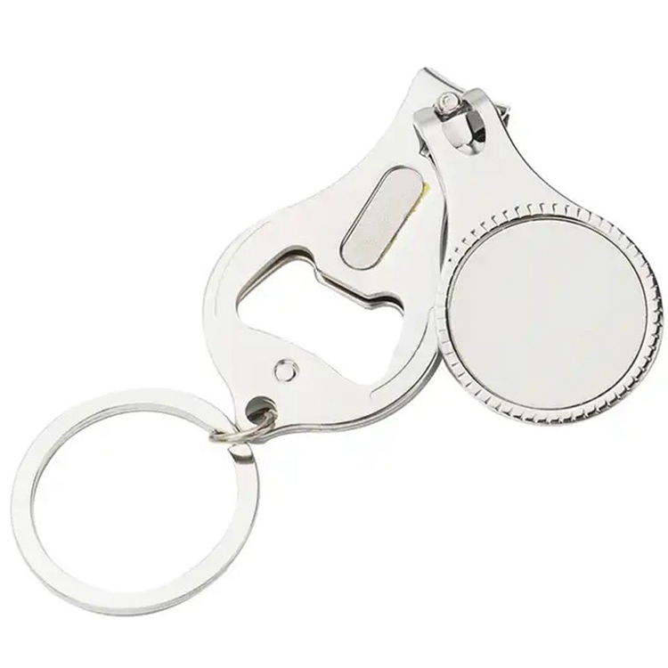 Chaveiro abridor de dedos de mão dobrável tesoura de unhas cortadores de unhas. Chaveiro dobrável multifuncional durável com tesoura de unhas, abridor de garrafas e porta-chaves, perfeito para viagens e uso diário. A superfície em branco de sublimação permite logotipos ou designs personalizados, tornando-a um presente promocional ideal ou acessório personalizado.