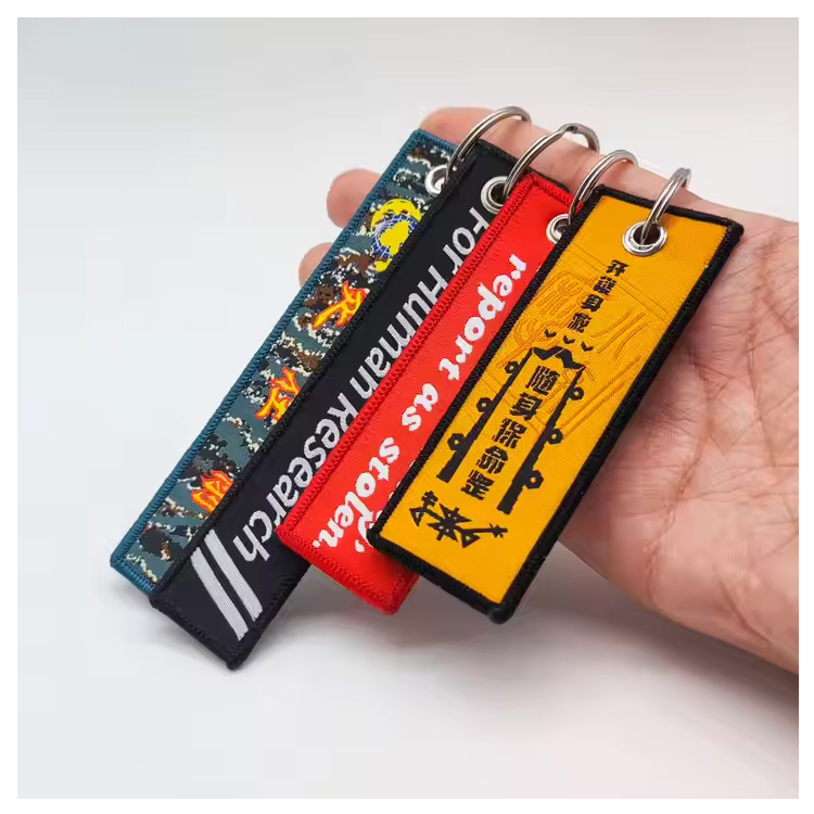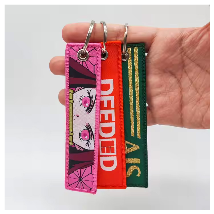 Cadeia -chave Sublimação Tags de bordados de anime Bordado. Material de tecido leve com impressão de sublimação, ideal para presentes promocionais, fãs de anime ou uso diário com um toque elegante.