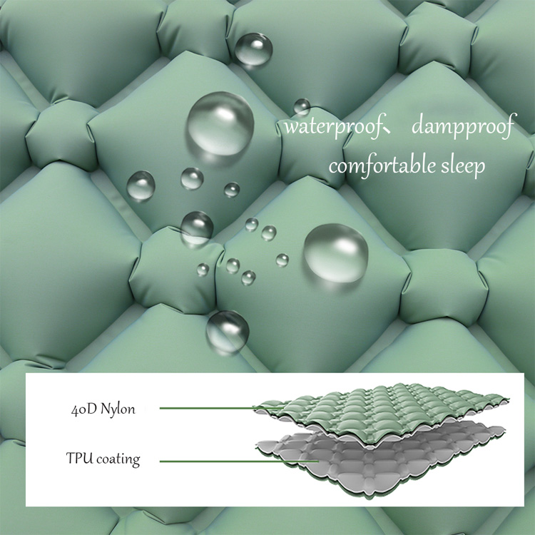 Feito de nylon ripstop 30D com laminação TPU, oferecendo excepcional resistência ao rasgo e retenção de ar confiável durante toda a noite em diversas condições externas.