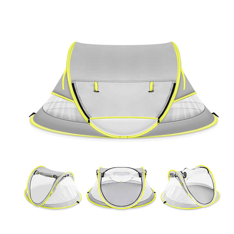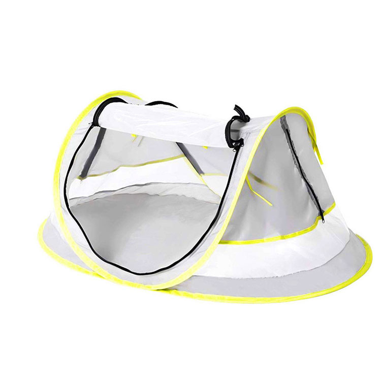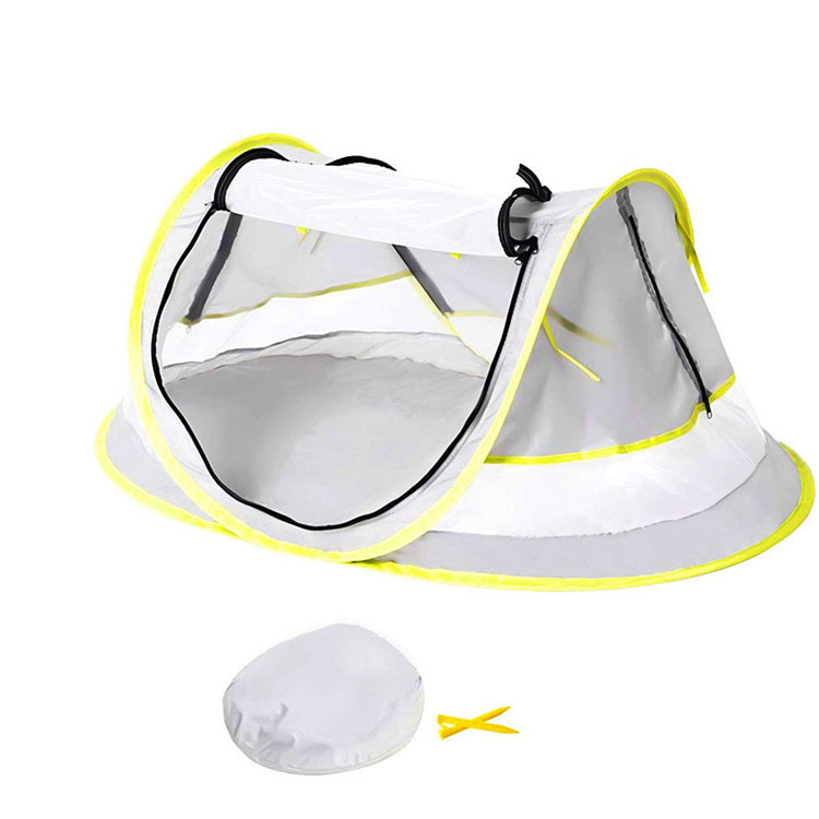 Barraca pop-up leve de poliéster impermeável de camada única. Seu melhor abrigo de praia de verão para aventuras em família. Esta barraca pop-up leve apresenta construção de poliéster à prova d'água de camada única, acomodando confortavelmente quatro pessoas. Perfeito para passeios na praia e acampamentos sazonais, combina configuração rápida com proteção confiável contra intempéries.