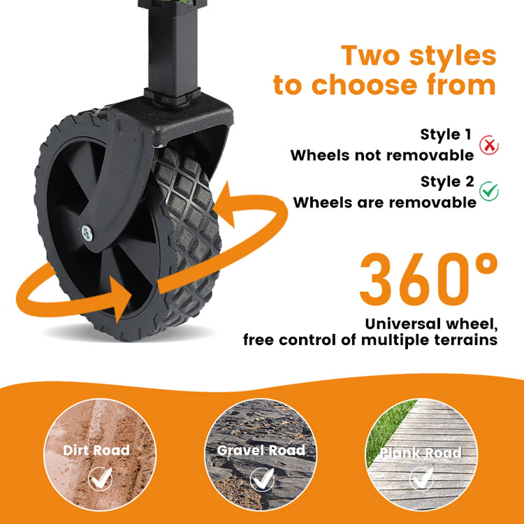 Equipado com pneus pneumáticos de 8 polegadas com padrões de piso profundos que navegam suavemente em areia, cascalho, grama e trilhas irregulares, garantindo movimento estável e fácil manobrabilidade.
