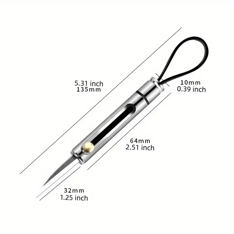 Medindo apenas 2,5 polegadas e pesando apenas 0,8 onças, esta ferramenta se conecta perfeitamente ao seu chaveiro ou mochila, garantindo que você sempre tenha uma solução de corte disponível.