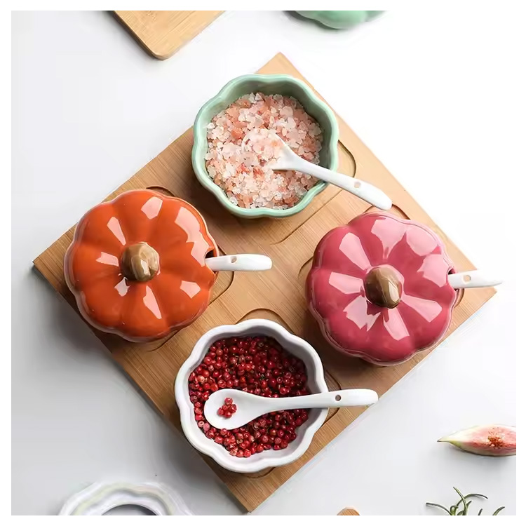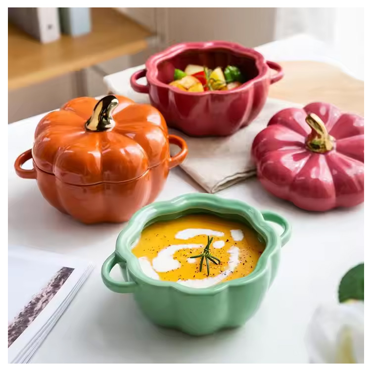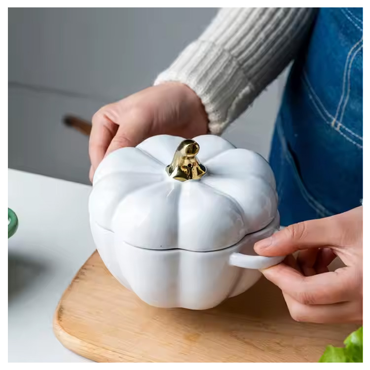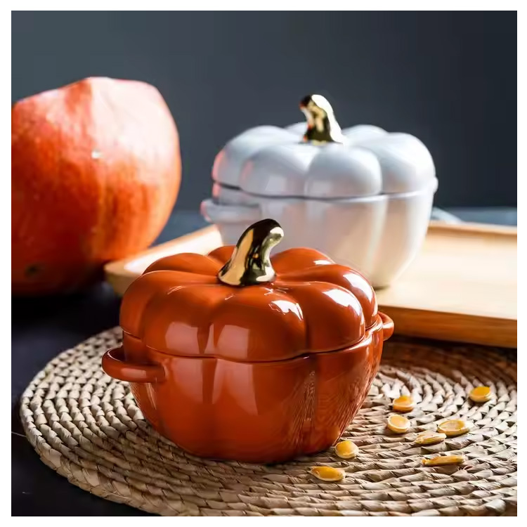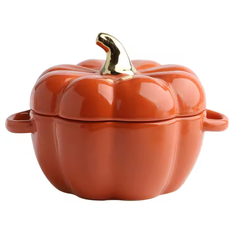 Novo tigela de cozinha de forma de abóbora com panes de cozinha de tampa.
