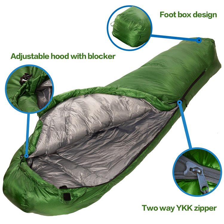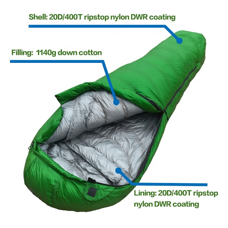 Saco de dormir múmia portátil ultraleve para clima frio ao ar livre. Sua melhor solução para dormir em clima frio para aventuras no deserto. Este saco de dormir ultraleve para múmia possui isolamento premium de penas de ganso para aquecimento máximo. Projetado para acampamentos sérios, combina eficiência térmica excepcional com peso mínimo da embalagem.