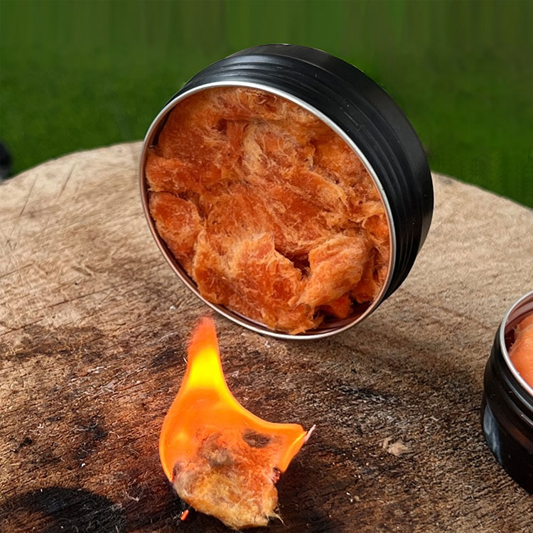 Equipamento ao ar livre de emergência Quick Tinder Lama de fogo de algodão encerado. Sua solução confiável de partida de fogo para aventuras ao ar livre. Este Tinder Rápido de Emergência apresenta formulação de algodão e lama de fogo especialmente encerado. Projetado para situações de sobrevivência, garante ignição rápida mesmo em condições úmidas durante caminhadas e acampamentos.