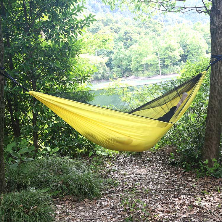 Possui rede mosquiteira de poliéster 210T com bordas reforçadas e corpo de rede de náilon 70D, criando o equilíbrio perfeito entre proteção respirável contra insetos e capacidade durável de suporte de peso.