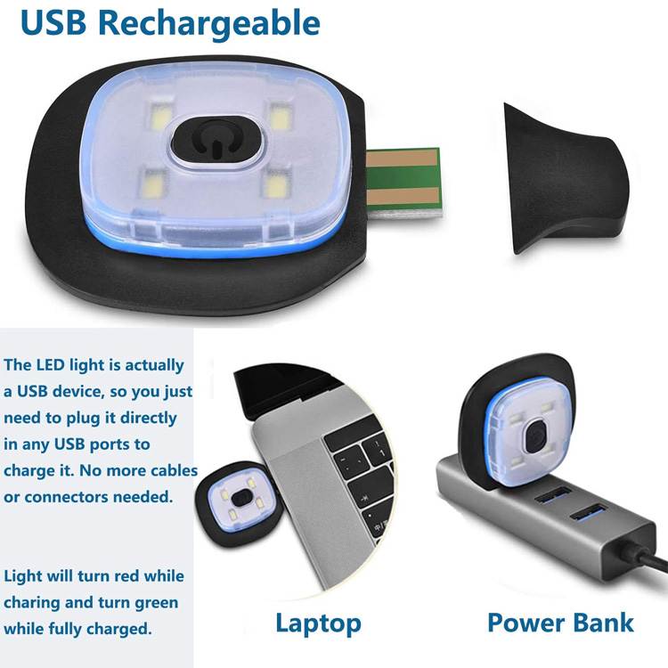 Chapéu de farol LED mãos-livres recarregável, luz noturna de malha