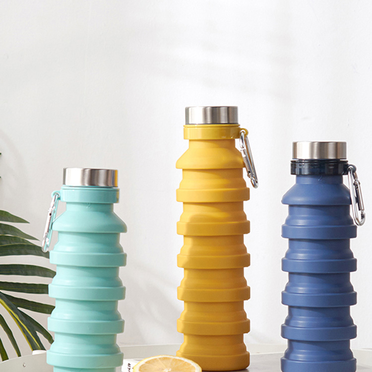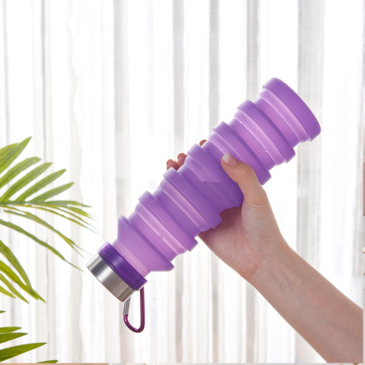 Garrafa de água dobrável de silicone reutilizável sem BPA