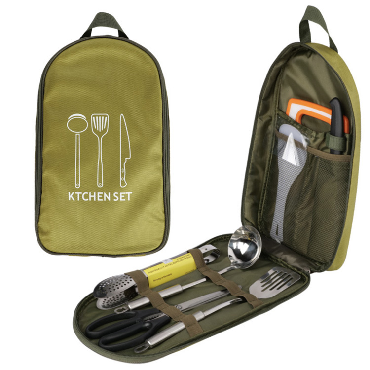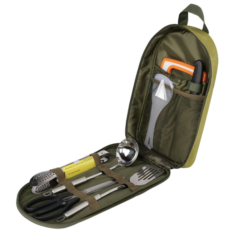 Tudo o que você precisa para cozinhar ao ar livre vem perfeitamente organizado em uma bolsa portátil, eliminando o incômodo de reunir ferramentas e acessórios de acampamento separados para suas viagens.