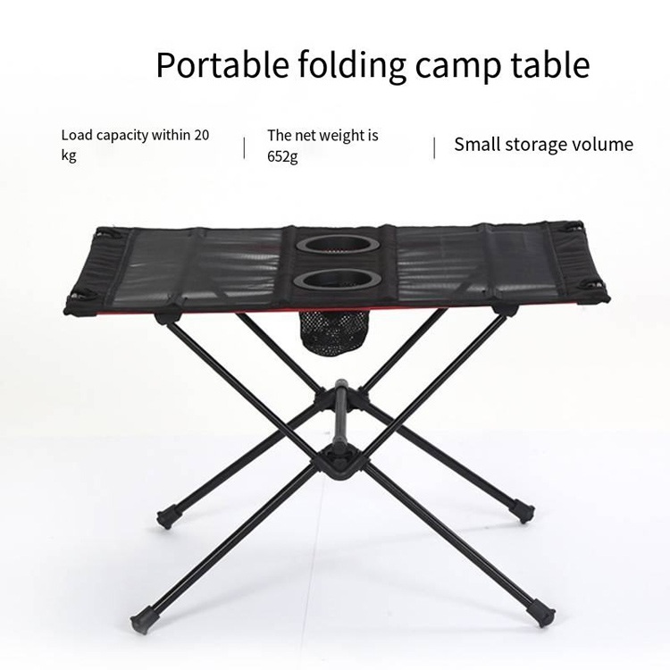 Mesa de acampamento ultraleve Mesa dobrável de malha respirável de nylon. Sua solução definitiva de mesa portátil para aventuras ao ar livre. Esta mesa de acampamento ultraleve apresenta construção de náilon durável com superfície de malha respirável e porta-copos integrado. O design dobrável garante máxima portabilidade para todas as suas atividades ao ar livre.